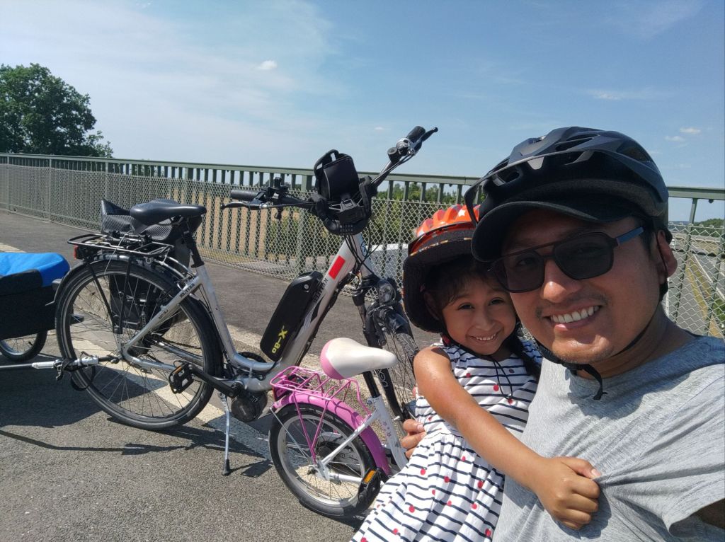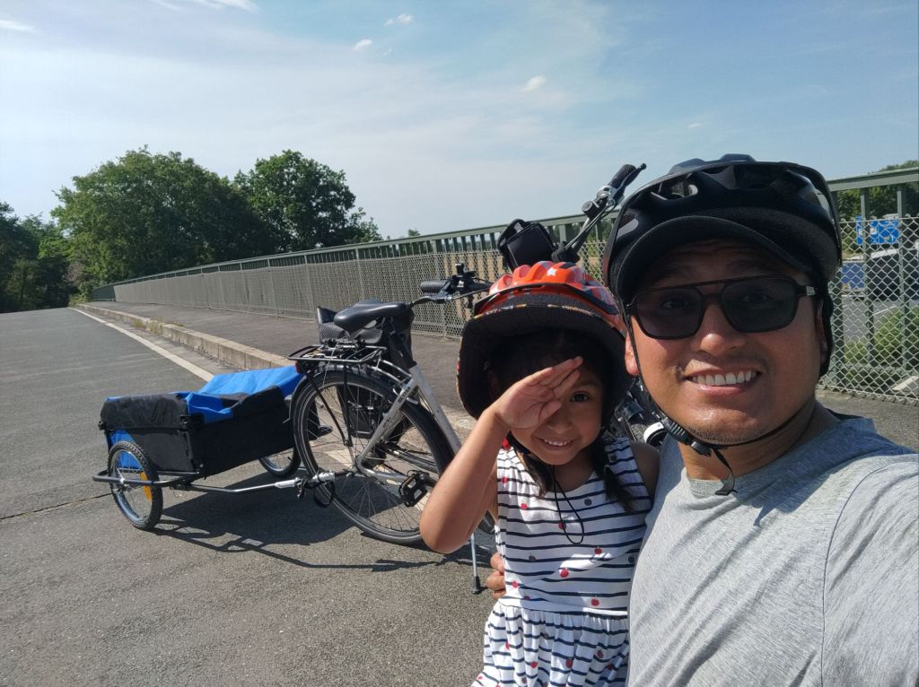 Empezó a pedalear en la pequeña pendiente que hay al salir de casa y se dio cuenta de que sí podía. —¡Papá, vamos a esa tienda a comprar cosas para el bebé! —dijo con entusiasmo. Pero en el camino, algunas subidas se le complicaron. Con su bici pequeña las habría superado sin problema, pero aún no dominaba los cambios de marcha de la grande. Cruzamos el puente caminando y, una vez en terreno plano, empezó a entender cómo funcionaban. Aún así, frenar y bajarse de la bicicleta seguía siendo una odisea peligrosa para ella. Me di cuenta de que si íbamos a recorrer 7 km de ida y otros 7 de vuelta, y quizás con un mueble en el remolque, no era una buena idea continuar así.